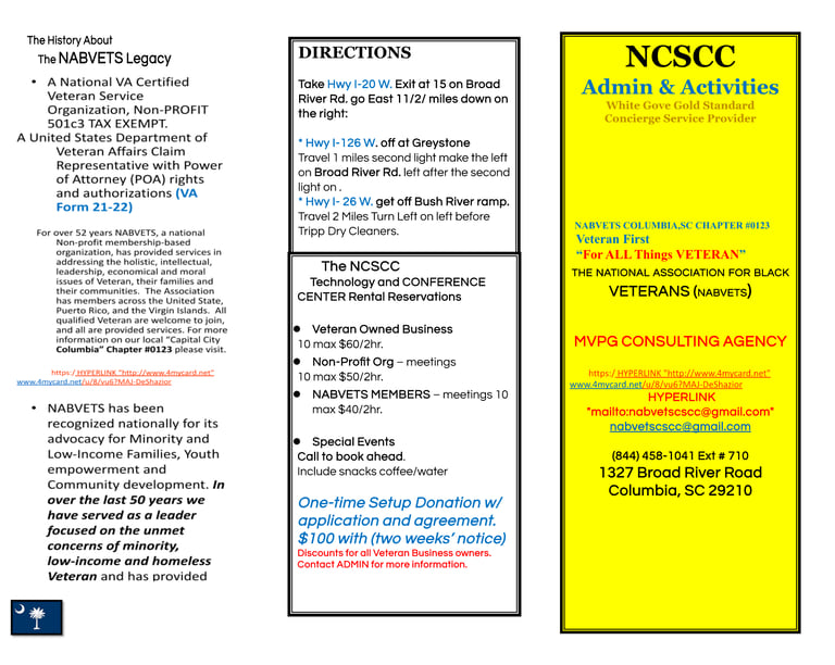MVP is the "ONLY" one-stop veteran service plaza in the capital city midlands metropolitan area of South Carolina offering the most services "EXCLUSIVELY" to servicemen/women, veterans, spouses, dependents, and family members.